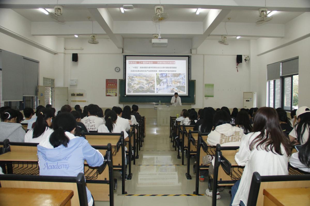 课堂上,杨云奇副校长以“凝心聚力 挺膺担当——深学细悟党的二十届四中全会精神”为题,从历史方位和发展环境出发,将思政教育与党性教育紧密融合,深入剖析了党的二十届四中全会精神的核心要义与丰富内涵。通过回顾改革开放以来历届四中全会和剖析“十五五”时期我国发展环境面临的深刻复杂环境,引导在场的师生们在思想上,要深学细悟全会精神,将个人理想融入国家发展大局;在行动上,要苦练专业本领,以工匠精神服务高质量发展;在实践上,要投身社会服务与文化建设;在日常中,要始终坚持践行社会主义核心价值观。他强调,面对复杂多变的挑战,师生们需凝心聚力、挺膺担当,以全会精神为指引,在日常学习和工作中积极践行党的宗旨,为保障人民群众的生命健康贡献自己的力量。