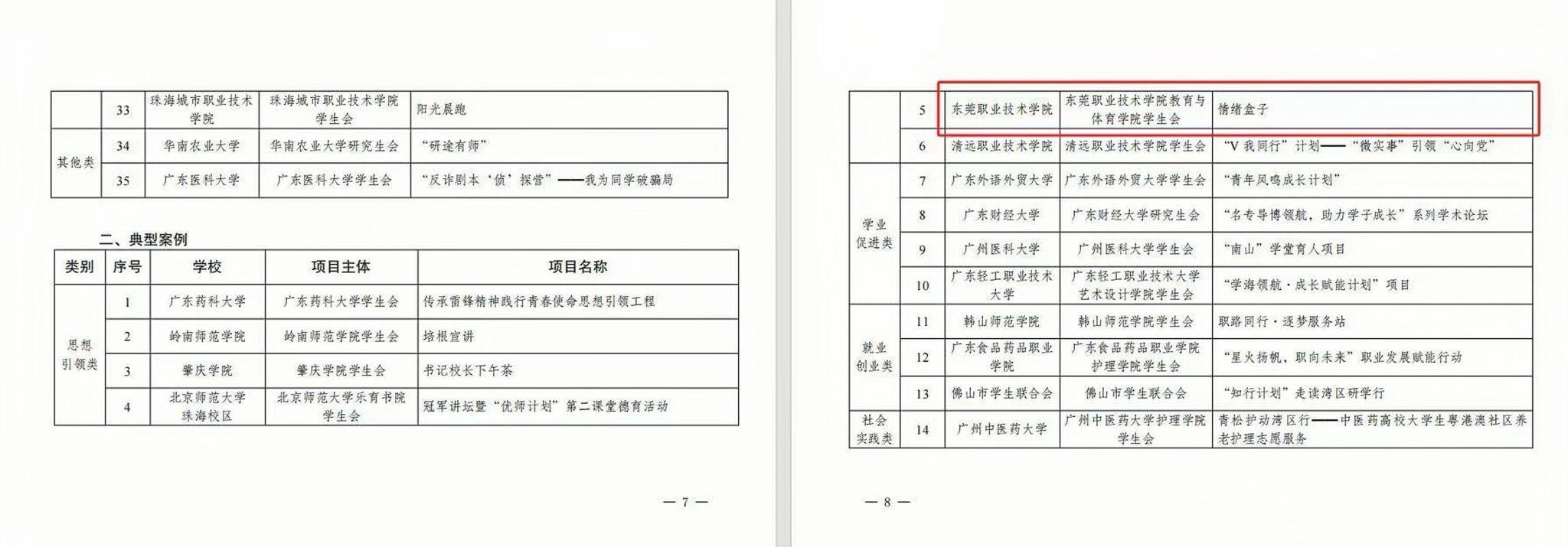 近日,广东省学生联合会公布2025年高校学生会“我为同学做实事”服务项目典型案例名单。我校教育与体育学院(筹)学生会打造的“情绪盒子”心理支持项目成功入选,获评省级优秀案例。该项目针对大学生日常学习、生活中常见的焦虑、压力等情绪问题,构建“线下实体收纳箱+24小时线上平台”双轨服务模式,为学生提供随时可及的情绪疏解渠道。