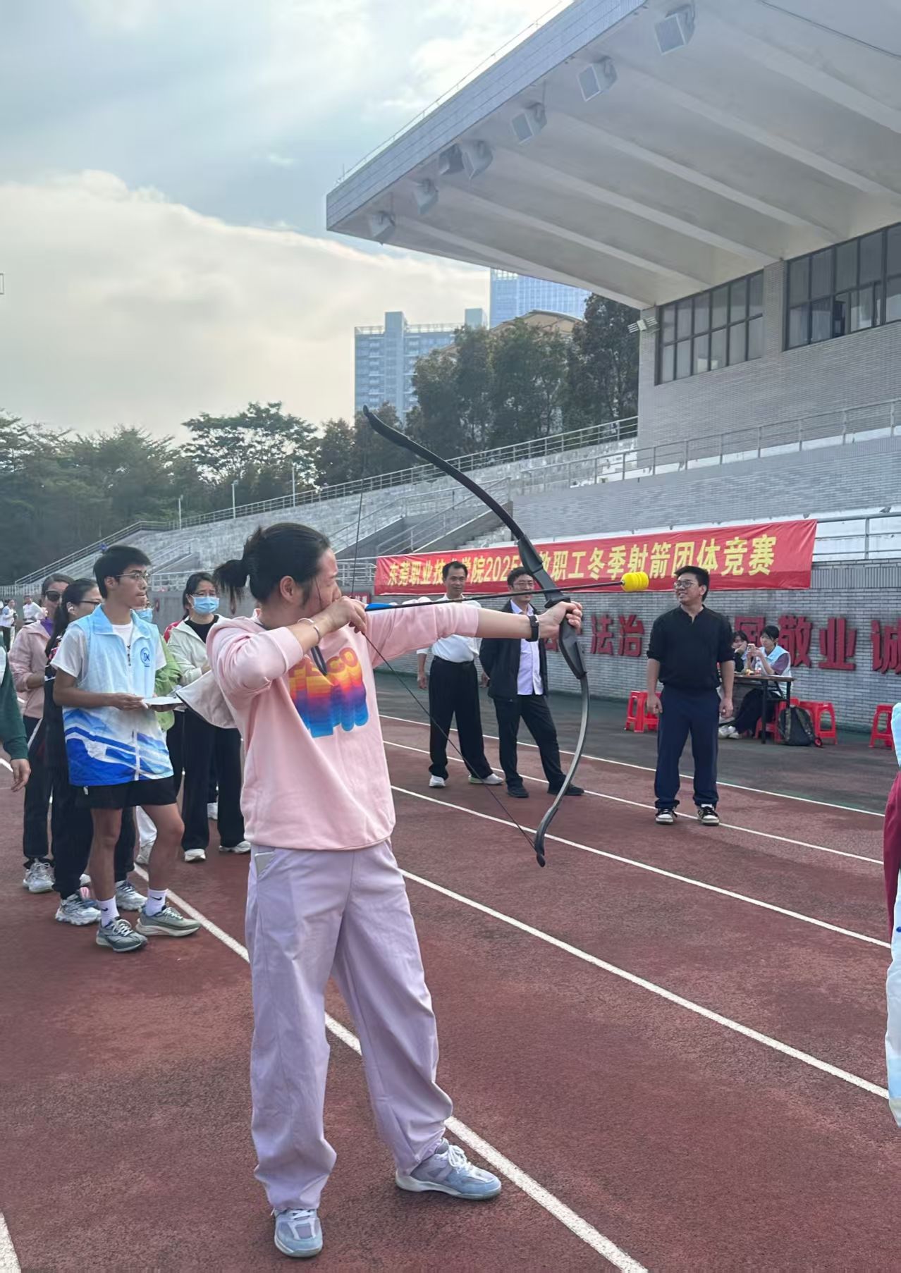赛场上,选手们精神抖擞、全神贯注,站位、搭箭、扣弦、瞄准、发射一气呵成,箭矢破空而出直中靶心的瞬间,引来场边阵阵欢呼与喝彩。各支队伍成员默契配合、奋勇争先,既有行政教职工沉稳稳健的从容姿态,也有一线教师敢打敢拼的昂扬斗志,充分展现了我校教职工团结协作、积极向上的精神风貌。经过激烈角逐,智能制造学院代表队斩获团体一等奖,电子信息学院代表队和通识学院代表队并列获团体二等奖。