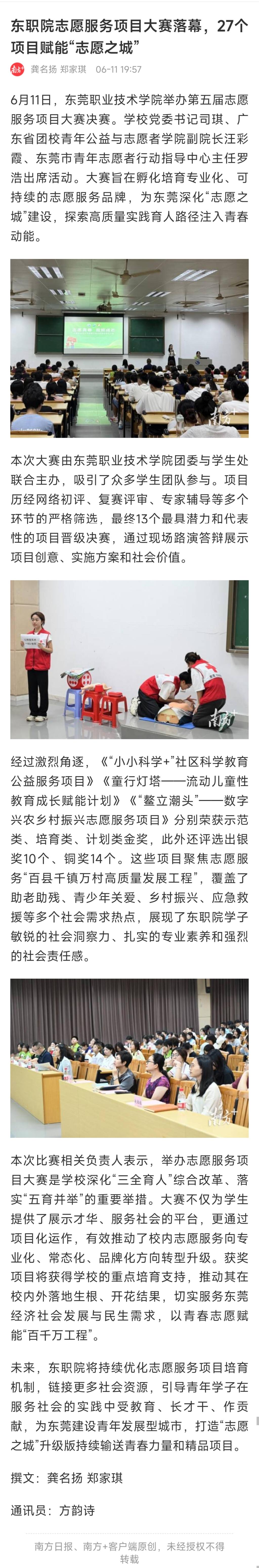 【南方+】东职院志愿服务项目大赛落幕,27个项目赋能“志愿之城”