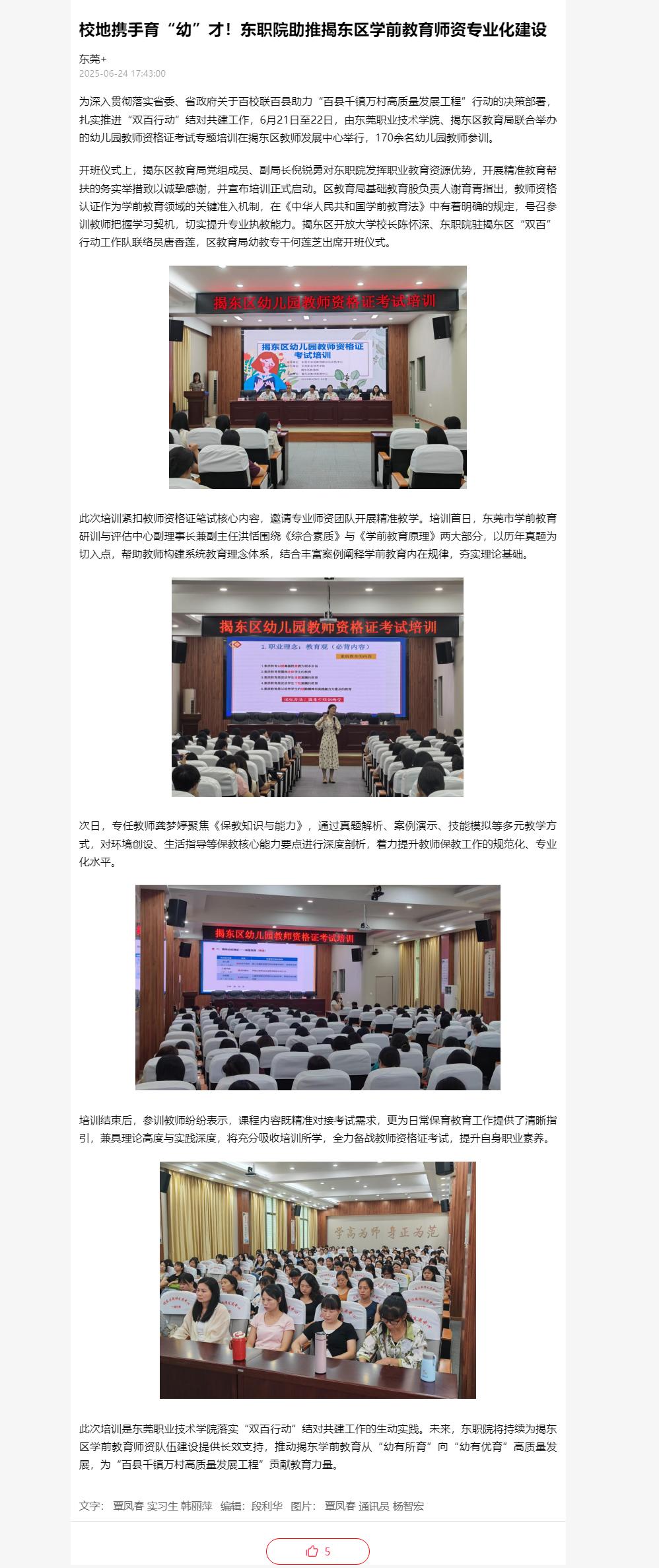 【东莞+】校地携手育“幼”才!东职院助推揭东区学前教育师资专业化建设