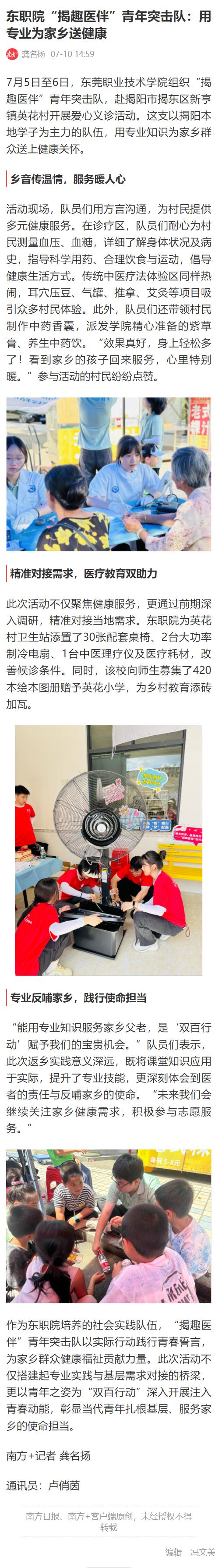 【南方+】东职院“揭趣医伴”青年突击队:用专业为家乡送健康